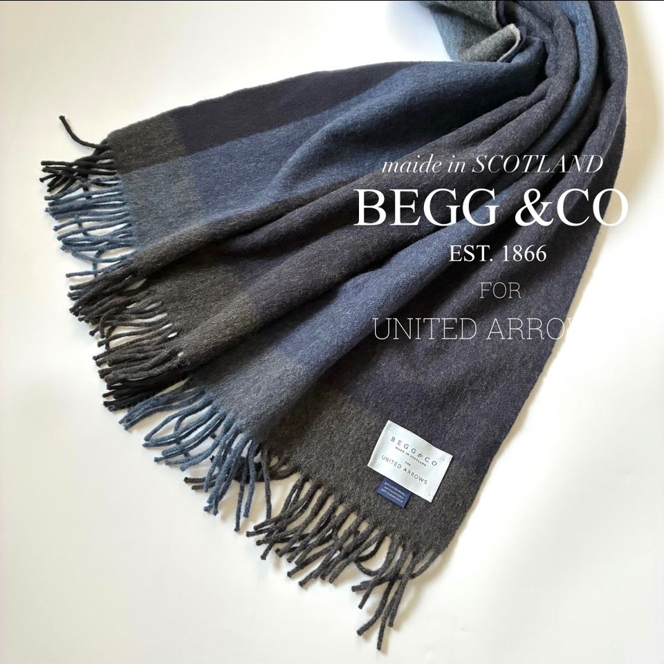 BEGG-CO UNITED ARROWS 別注 ウールカシミヤ ビッグストライプ マフラー 大判