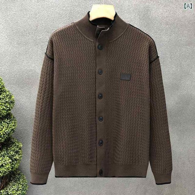 商品名:秋冬 コーデ メンズ 服 シンプル ファッション オシャレ 大人 かっこいい 大きいサイズ ストリート 紳士服 ブラウン ニット カーディガン ジャケット スタンドカラー トップス ハイエンド