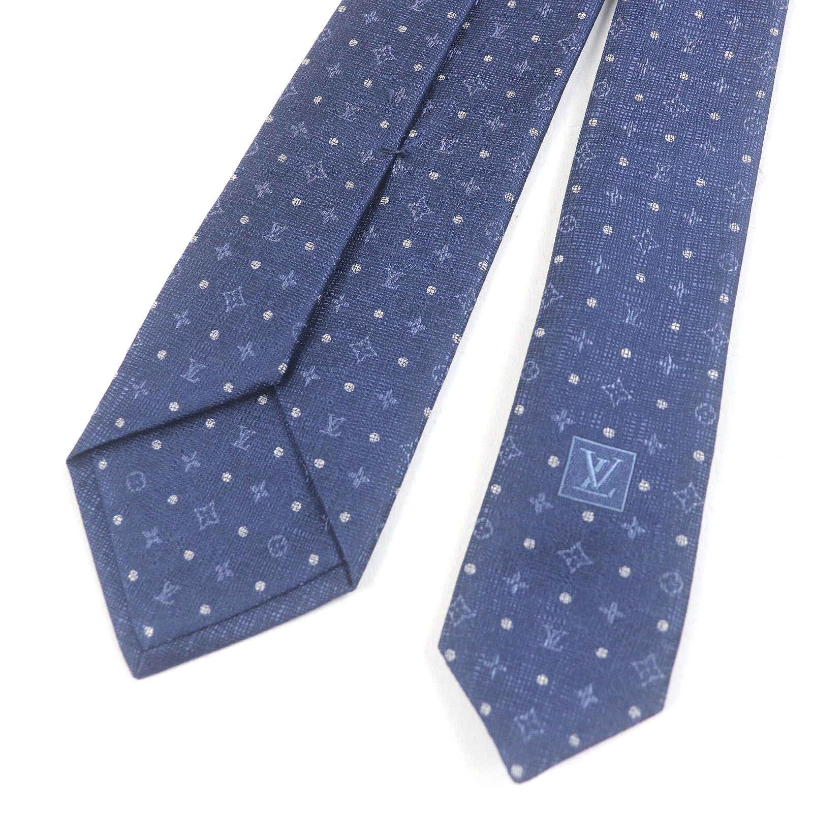 LOUIS VUITTON ルイヴィトン M 75979 クラヴァット ドッツ モノグラム シルク100% レギュラータイ ネクタイ ネイビー き イタリア製 メンズ