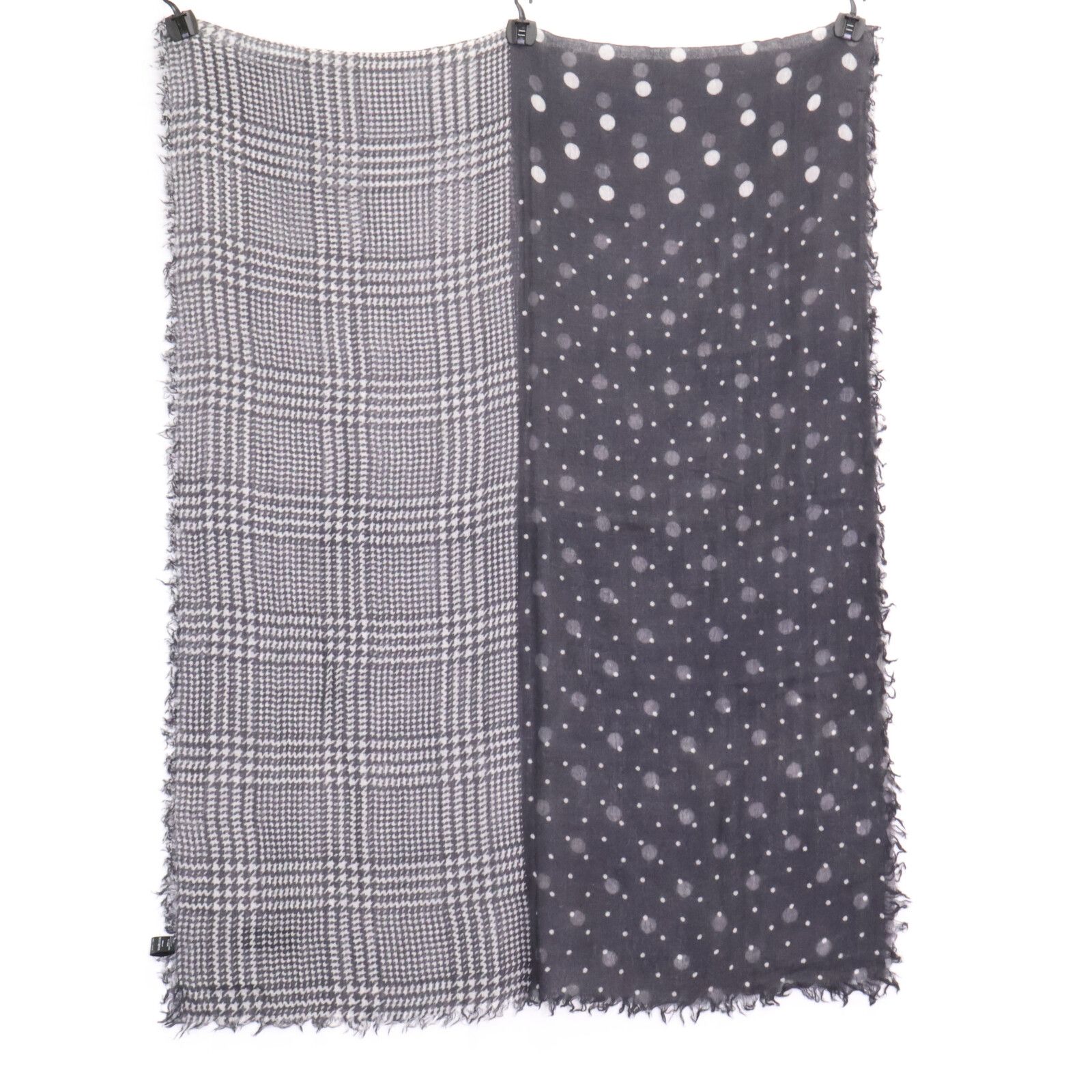 1 piu uguale 3 ウノピゥウノウグァーレトレ MRG 503 CAS 031 DK 99 F BIG FRINGE STOLE グレンチェック-ドットパターン カシミヤ
