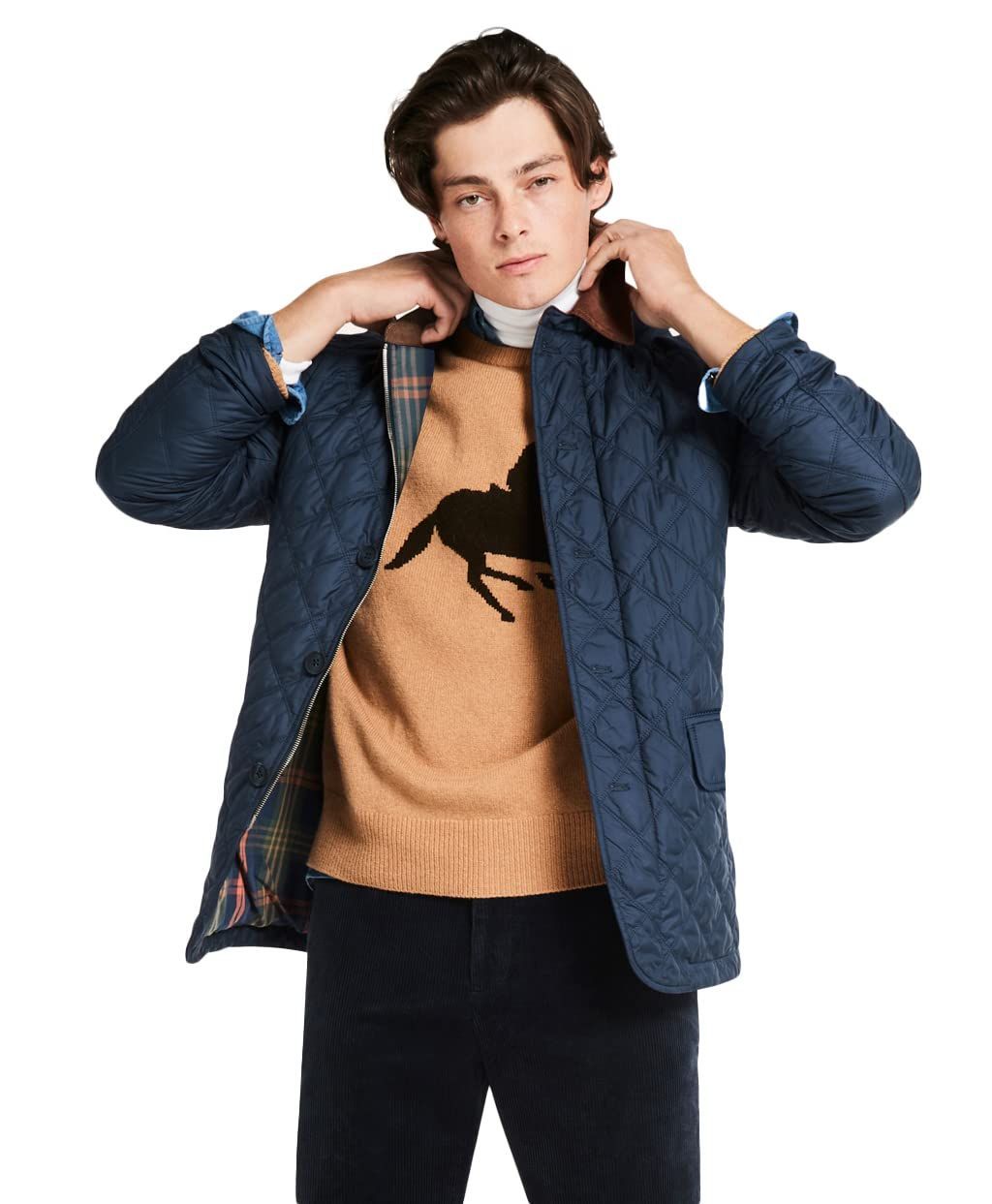 シャツやセーターの上に羽織るカジュアルスタイルはもちろん、タイドアップスタイルとしても活躍します。