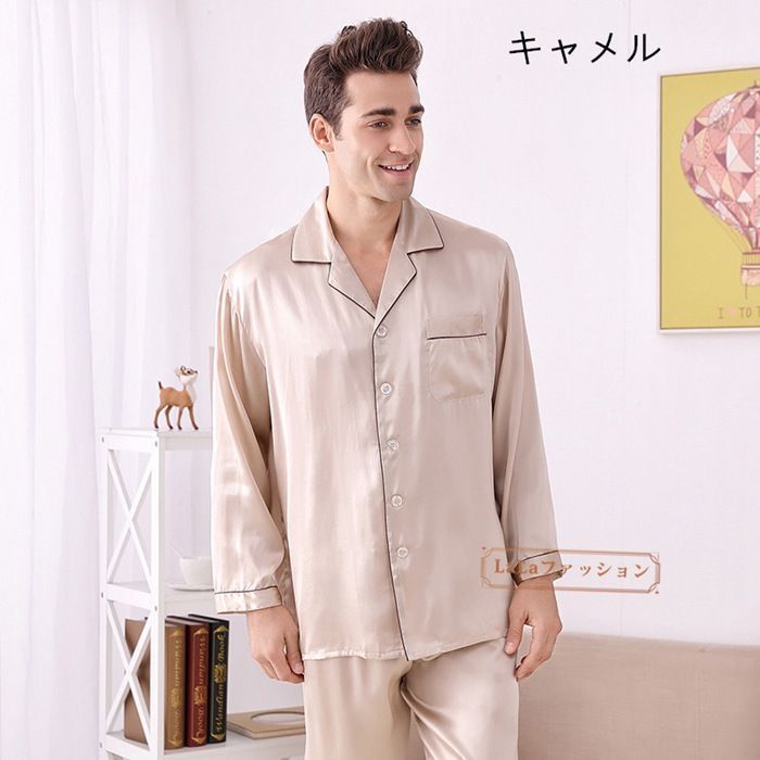 シルク パジャマ メンズ シルクパジャマ 上下セット 長袖 シャツ ロング パンツ セットアップ ルームウェア 6 A シルクサテン 甚平 高品質 快眠 敏感肌 吸湿 速乾 抗菌 消臭 部屋着 寝間着 楽チン 洗える 入院yyxz 01