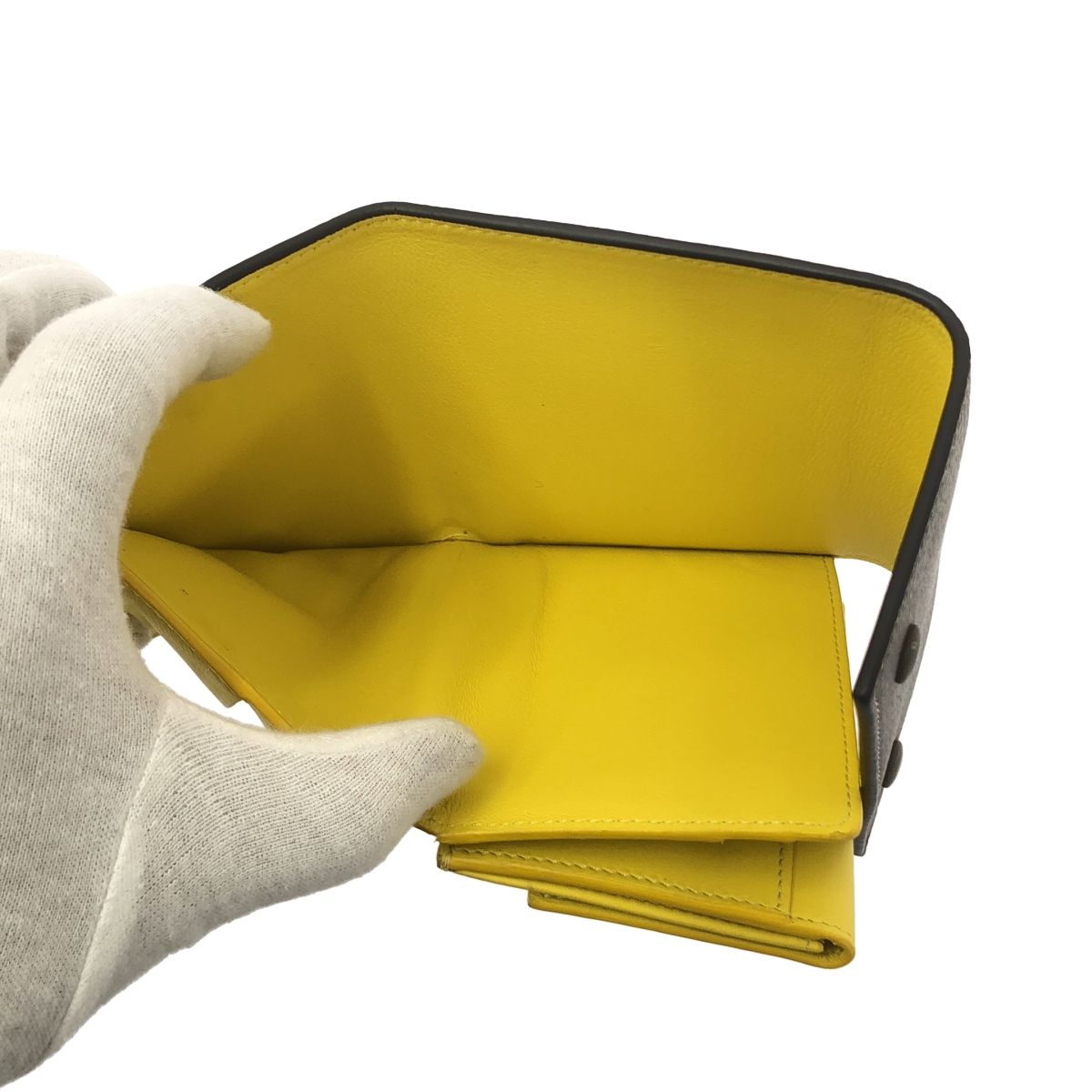 CELINE セリーヌ スモール フォールデッド マルチファンクション トリフォールド レザー ロゴ コンパクト ウォレット 財布 ブラウン イエロー レディース