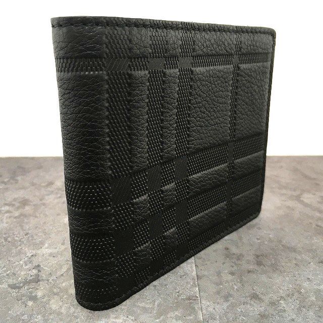 ブラックレザーにチェックが型押しされたバーバリーらしいお財布です。
