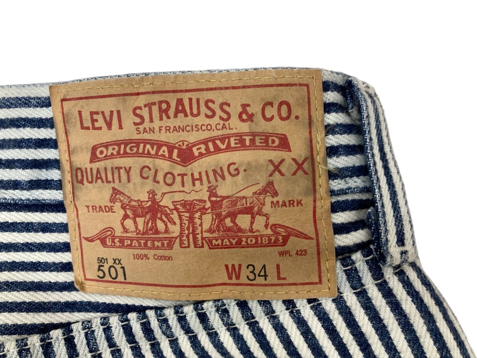 Levi’s リーバイス LEVIS×NIGO 501 XX ヒッコリーパンツ ボトム ストライプ BIG-E A 5903-0000 W 34 ホワイト×インディゴ メンズ 028
