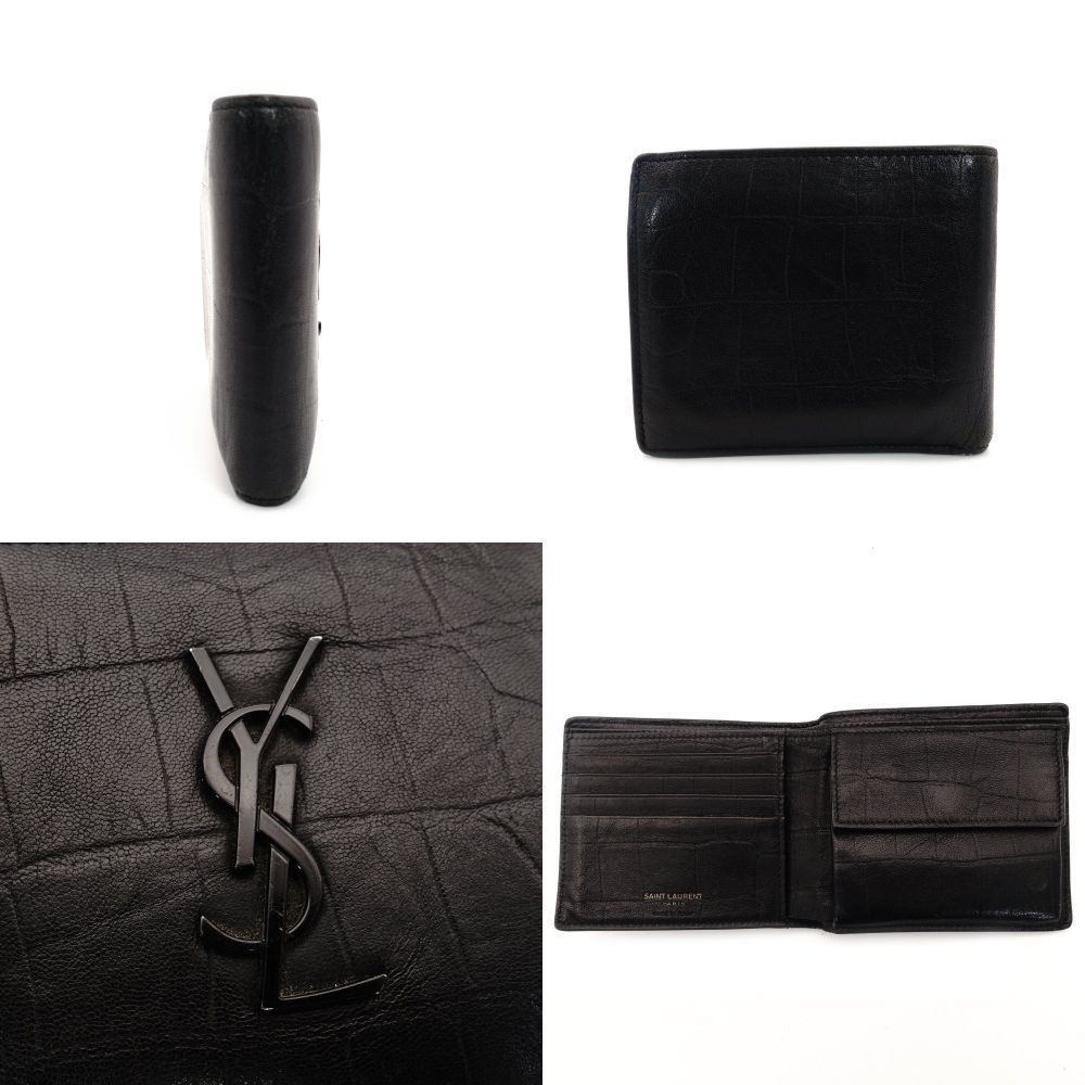サンローラン SAINT LAURENT 折り財布 YSL クロコ型押し ブラック レザー ミニ財布 メンズ 黒 二つ折り財布 7-9-656