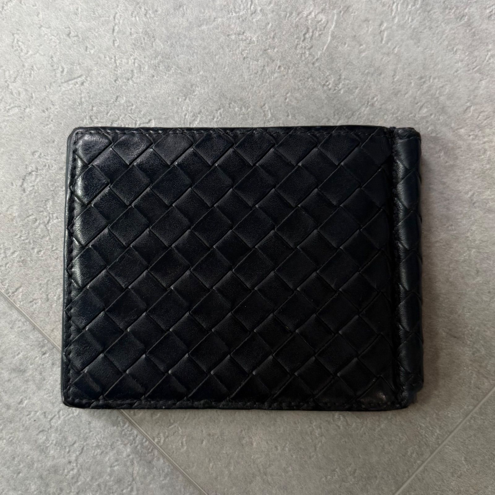 BOTTEGA VENETA ボッテガヴェネタ イントレチャート マネークリップ 二つ折り財布 カードケース カーフレザー ネイビー ブルー バイ ボッテガ