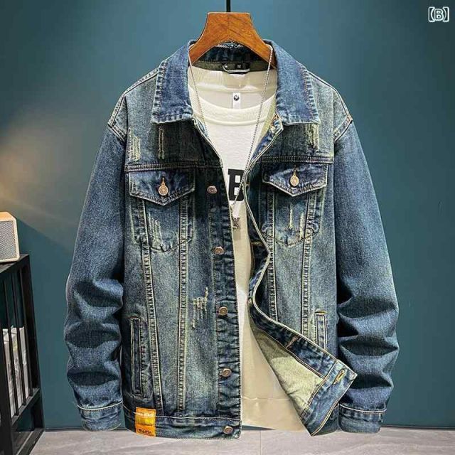 4 XL メンズ ファッション 服 男性用 オシャレ シンプル 大人 かっこいい ストリート アメリカン レトロ デニム ジャケット スタイル ウォッシュ加工 ダメージ加工 トップス カジュアル