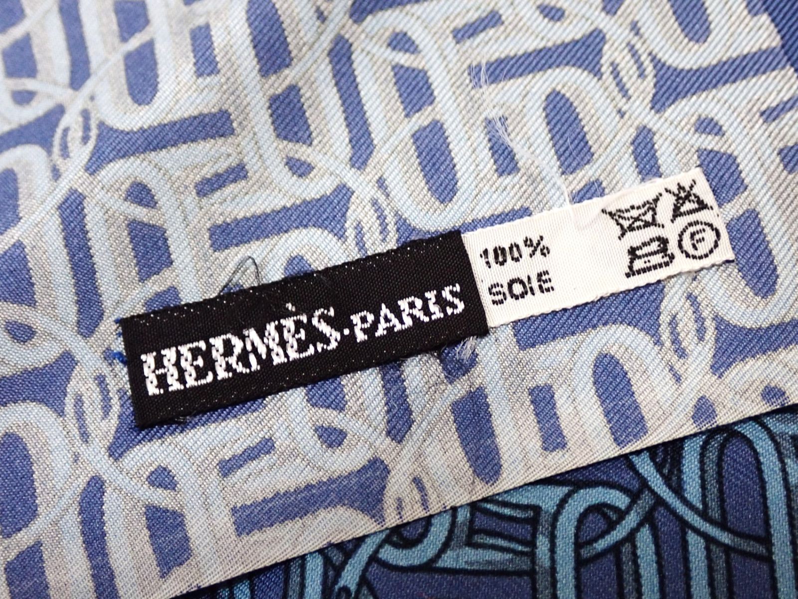 HERMES エルメス シルク ショール スカーフ 大判 タグあり ブルー系