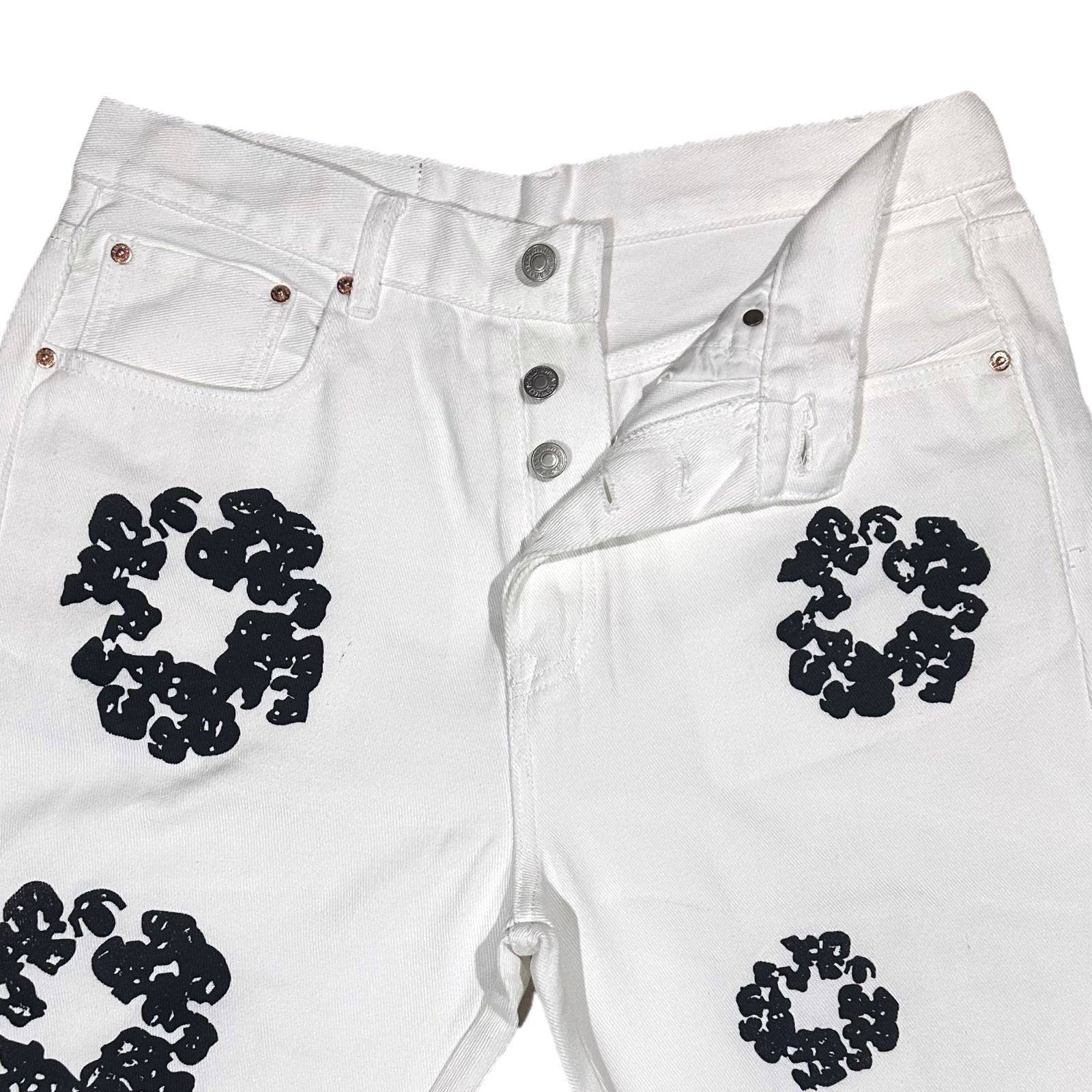 [並行輸入品] Denim Tears デニムティアーズ Levi's リーバイス フラワープリント デニムパンツ (ホワイト)