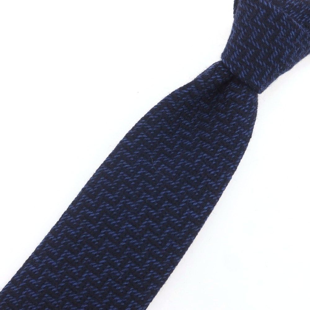 ニッキー nicky ウールシルク ヘリンボーン柄ネクタイ ダークネイビーxブルー メンズ