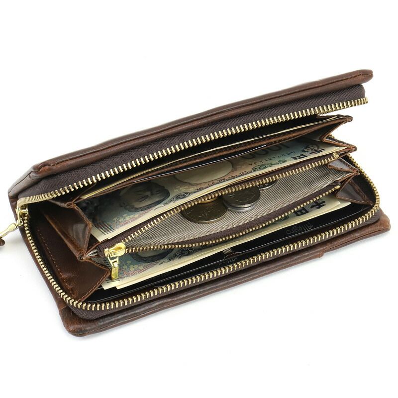 アレグロ ラウンドファスナー長財布 メンズ ブランド 本革 Allegro エスポワール 札入れ ロングウォレット 大容量 牛革 革 レザー バッファローレザー オイルレザー カジュアル オシャレ 紳士 軽量 さいふ サイフ 革小物 ウォレット