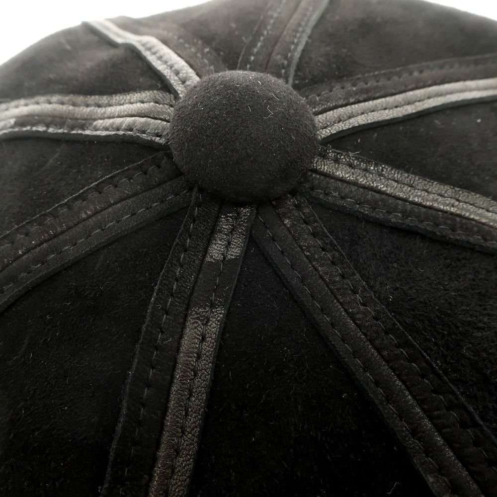 きめ細かなスエード素材を用いた、Indietro Associationコラボのキャスケットです。シーム部分はレザーでトリミングが施され、ブラック単色で仕上げることで統一感のある雰囲気に仕上がっています。