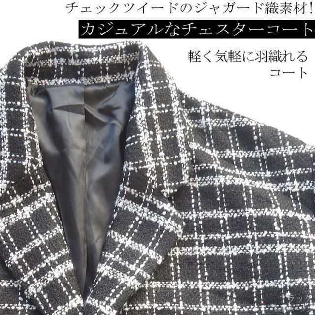 秋冬物 Rings リングス チェック柄 モノクロ ツイード生地 3つ釦 ノッチ衿 センターベンツ スーツ対応 ルーズサイズ カジュアル チェスターコート 白 黒 46 L~LL XL対応 smtb-k ky YDKG-k