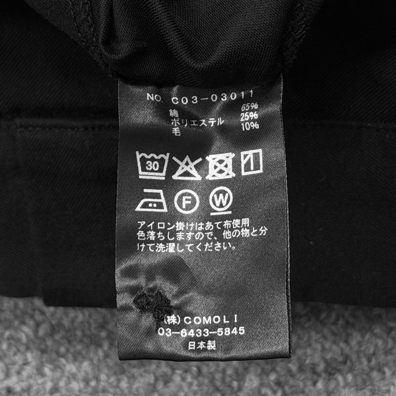 参考上代46200円 COMOLI ポストワークツイルパンツ トラウザーズ コモリ C 03-03011 ブラック 1 2072 M 3
