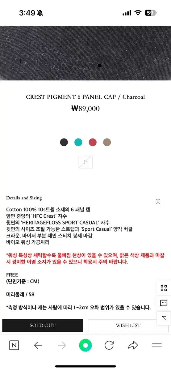 Heritage Floss ヘリテイジフロース 6 パネル ボールキャップ 帽子 チャコール