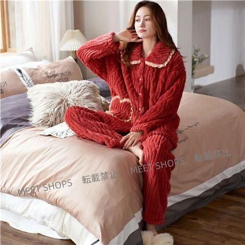 ペアパジャマ 冬 もこもこ カップル ペア ルームウェア セット 前開き 長袖 モコモコ メンズ 秋冬 結婚祝い プレゼント ペ ddhc 63