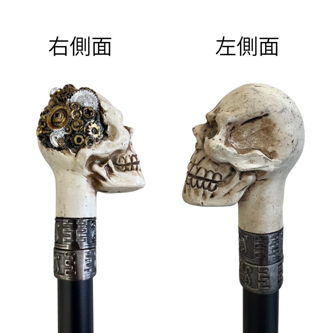 杖 スカルステッキ 歯車 ホワイト 髑髏杖 白髑髏 スチームパンク 魔王 ドクロ スカル 悪魔 デビル 骨 頭蓋骨 つえ ステッキ おしゃれ ゴシック パンク ファンタジー コスチューム ヨーロッパ 男性 女性 男女兼用 金属