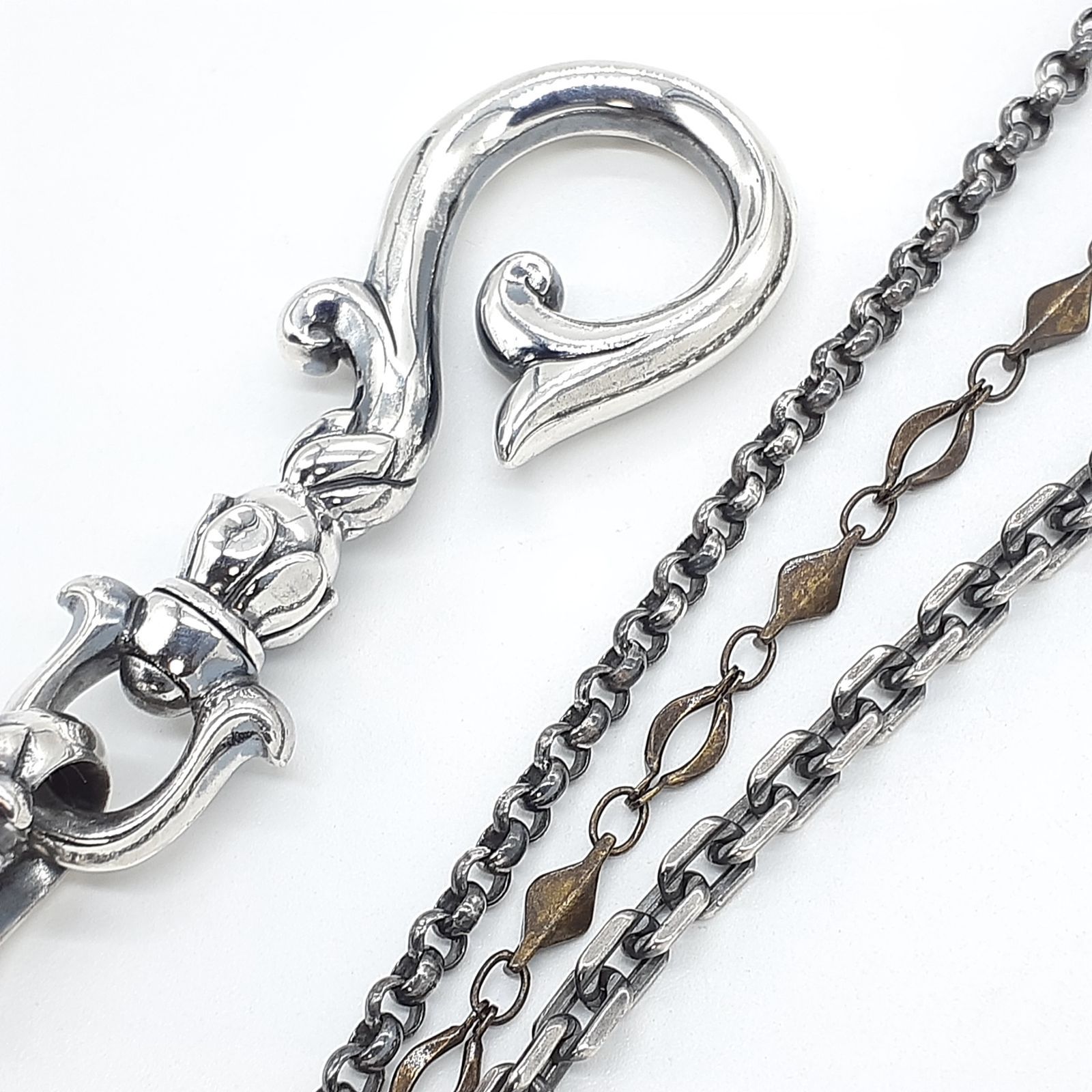 ★3種類のデザインチェーンが弧を描くウォレットチェーン。実用性と美しさを兼ね備えるハイブリッドなアイテムです。