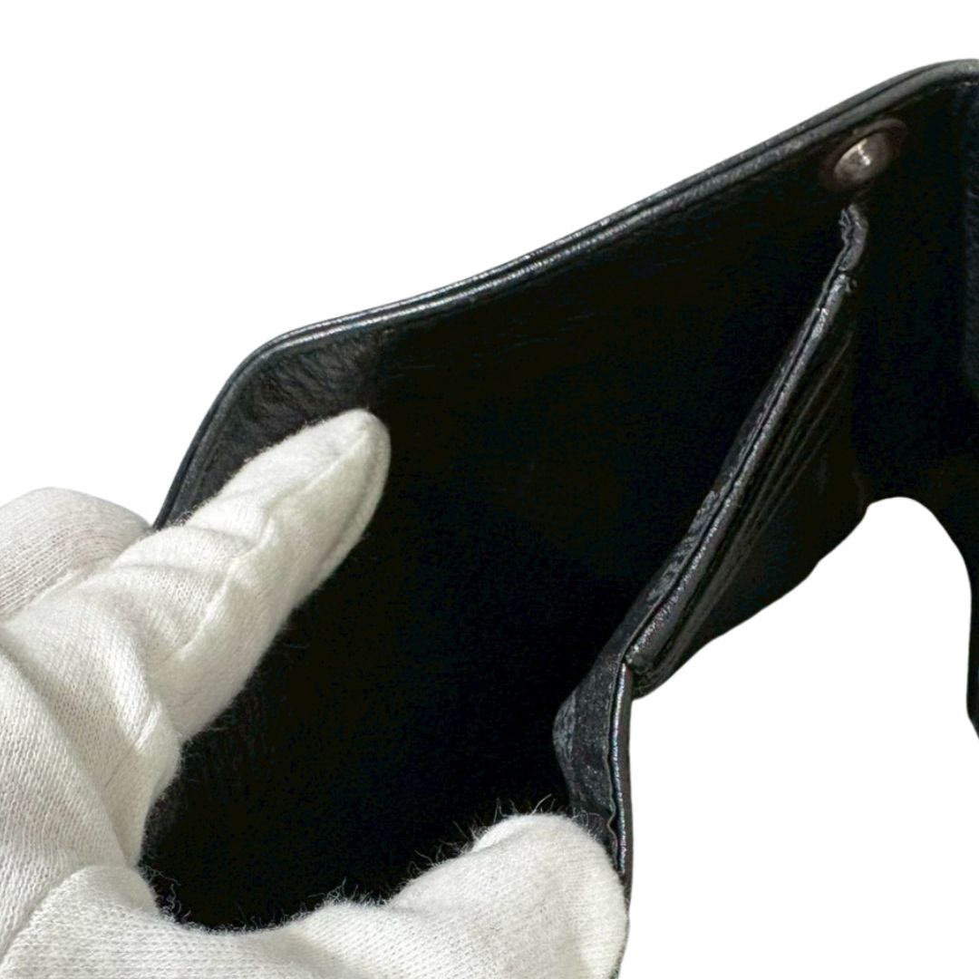 クロムハーツ Chrome Hearts ウェーブミニウォレット 三つ折り財布 レザー ダガージップ クロスボールボタン ブラック 黒