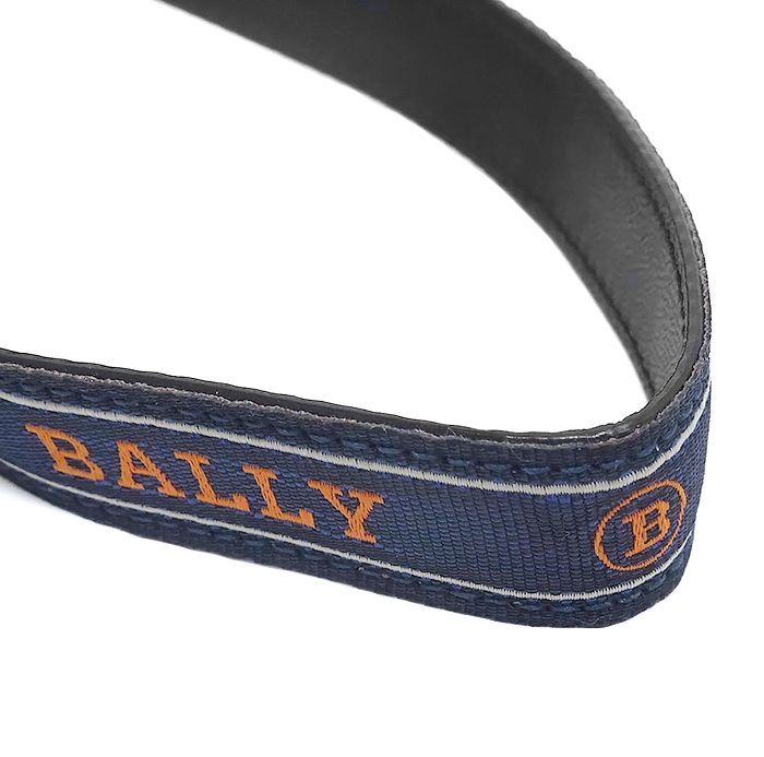 併売商品 BALLY バリー ハンドストラップ付きキーホルダー キャンバス ネイビー シルバー キーリング メンズ M 1433