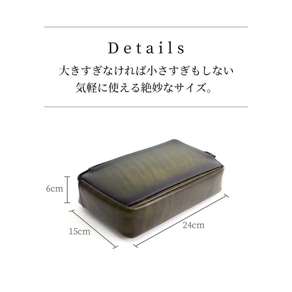 【スペック】 ・カードポケット?1 ・ミニポケット?1 ・ファスナーポケット?1 【サイズ】 ・縦 24cm × 横 15cm × 厚み 6cm ・重さ 355g 【素材】 ・本革 牛革 イタリアンレザー