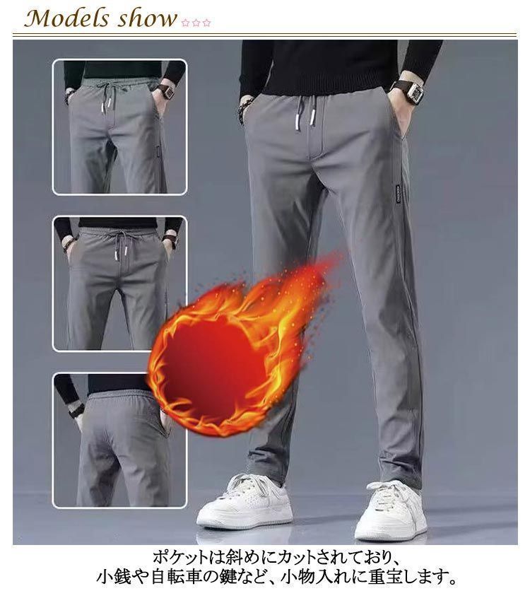 パンツ メンズ 裏起毛 チノパンツ ゴルフパンツ ストレッチ 秋冬 イージーパンツ 伸縮性 防寒 細身 美脚 ストレスフリー 冬 ズボン 無地 シンプル おしゃれ 黒 グレー 秋服 冬服 ウエストゴム itaiya 6630