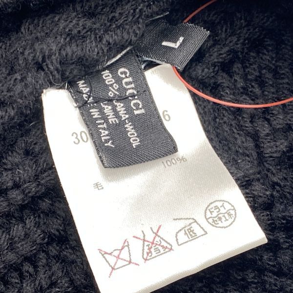 グッチ GUCCI ケーブルニットビーニー ニット帽 GGロゴ付き 帽子 黒 ブラック ウール L ユニセックス 5 E 254