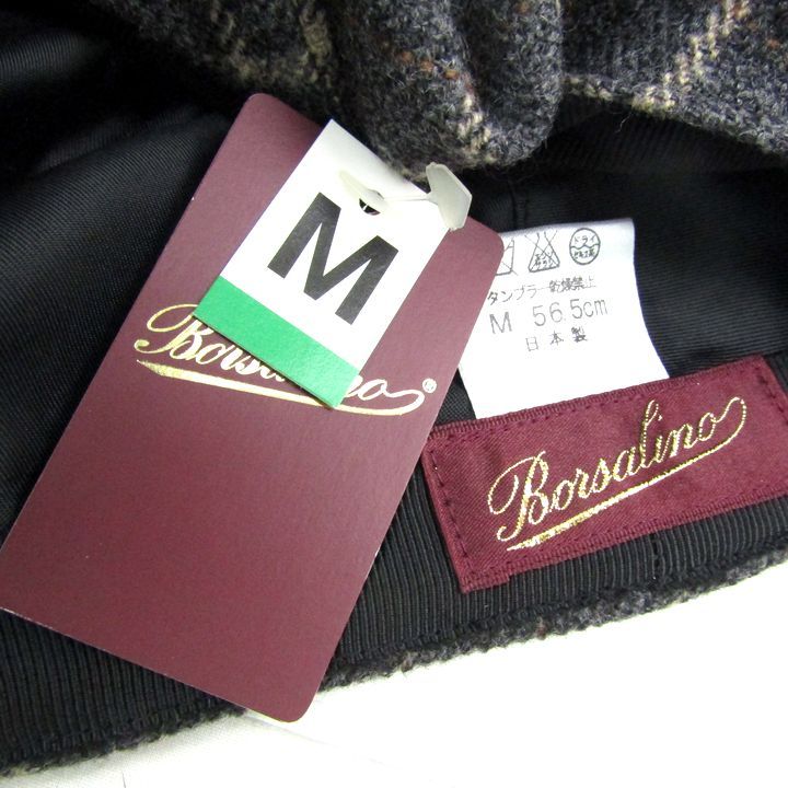 ボルサリーノ ハンチング 帽子 ブランド チェック ウール メンズ M 56.5 cm サイズ グレー Borsalino