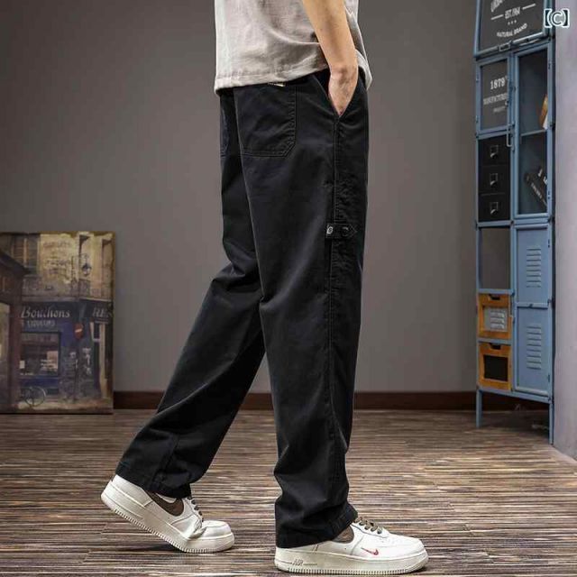 S メンズ ファッション 服 オシャレ シンプル 大 かっこいい 大きいサイズ ストリート 紳士服 レトロ アウトドア 夏 薄手 綿 カジュアル パンツ ストレート ワイド レッグ ロング