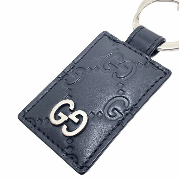 グッチ キーホルダー シグネチャー レザー キーリング カーフ 革 ブラック 黒 478136 GUCCI GG グッチシマ シマライン タグ キーフック チャーム キーチャーム バッグチャーム キー 鍵 ブランド小物