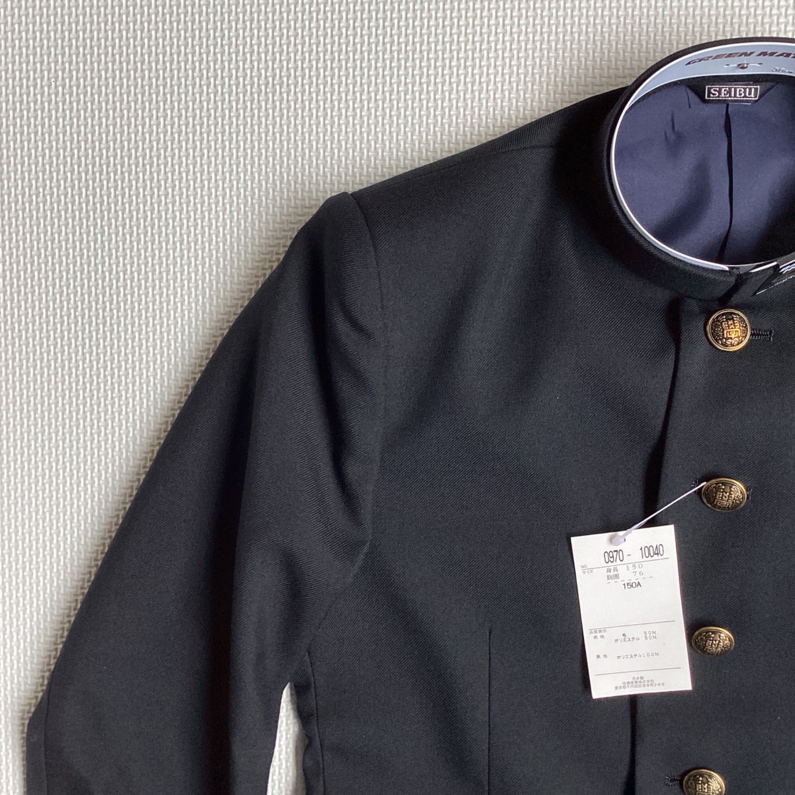 男子 学生服 150 A 襟 10040 学生 学ラン 詰襟 標準型 ポリエステル50% 毛50% ニッケ学生服 コンフォート Green Mate ウォッシャブル
