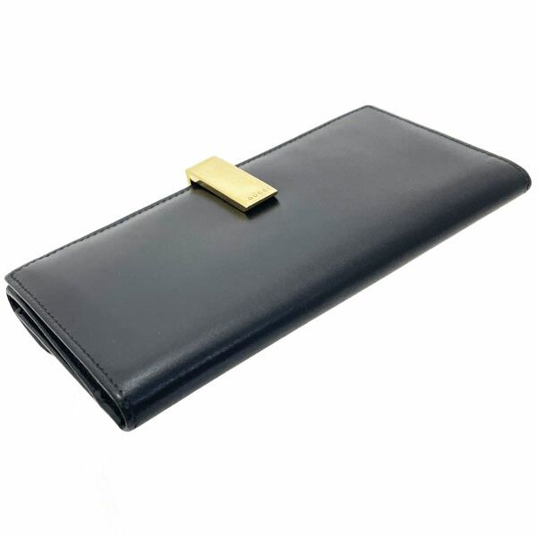 グッチ 長財布 ロゴクリップ Wホック長財布 レザー 革 ブラック 黒 035 2778 GUCCI 両開き長財布 二つ折り長財布 財布 ロングウォレット ウォレット サイフ