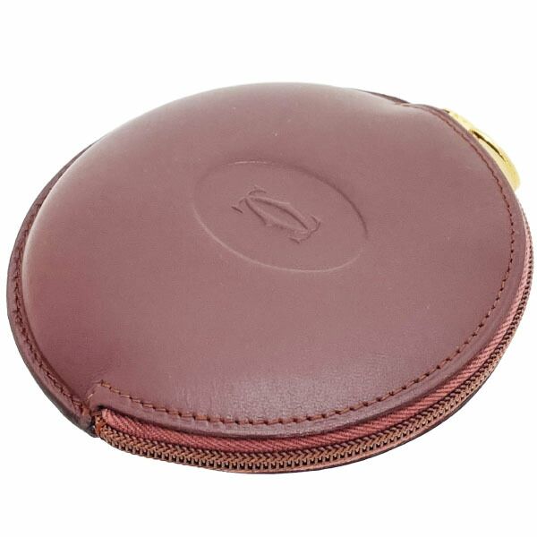 カルティエ コインケース マストライン コインパース レザー 革 ボルドー ワインレッド えんじ Cartier 2 C ラウンド 丸型 小銭入れ