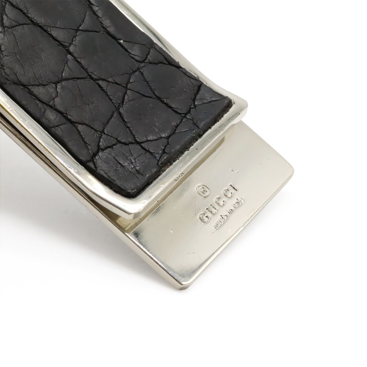 GUCCI グッチ マネークリップ ビルクリップ 札ばさみ クロコ型押し レザー ブラック 黒 シルバー金具