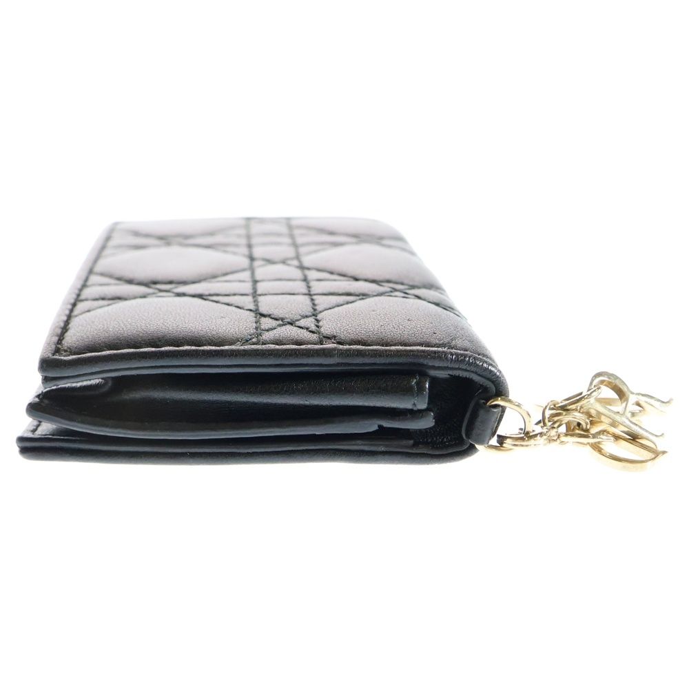 Christian Dior クリスチャンディオール レディディオール カナージュ キルティング レザー カードケース ゴールド金具 ブラック