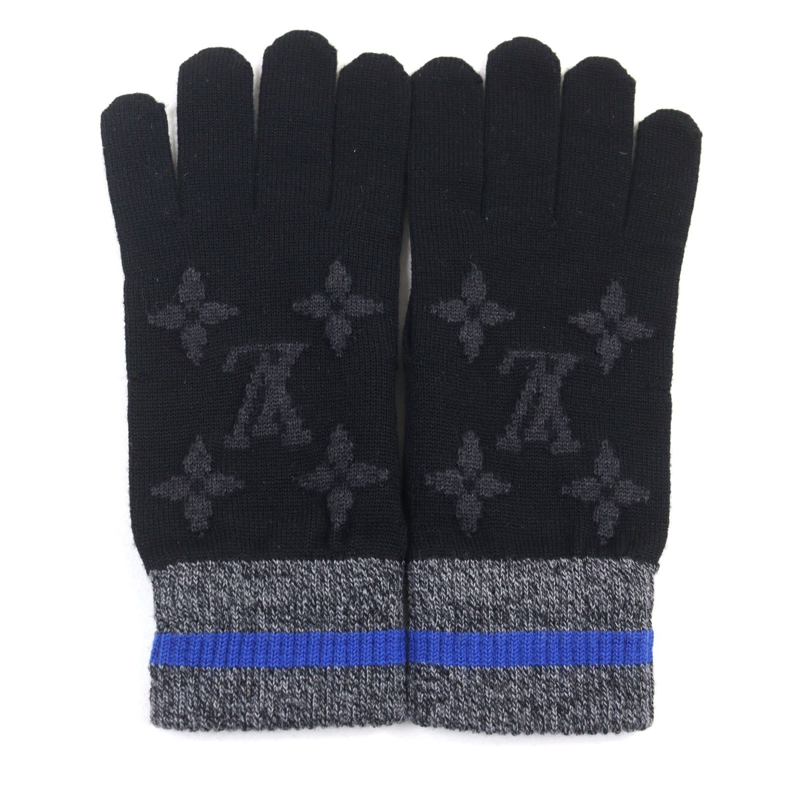LOUIS VUITTON ルイヴィトン 2020年製 M 76575 ゴン モノグラム ブロック ウール ニットグローブ 手袋 ブラック系 4 き イタリア製 メンズ