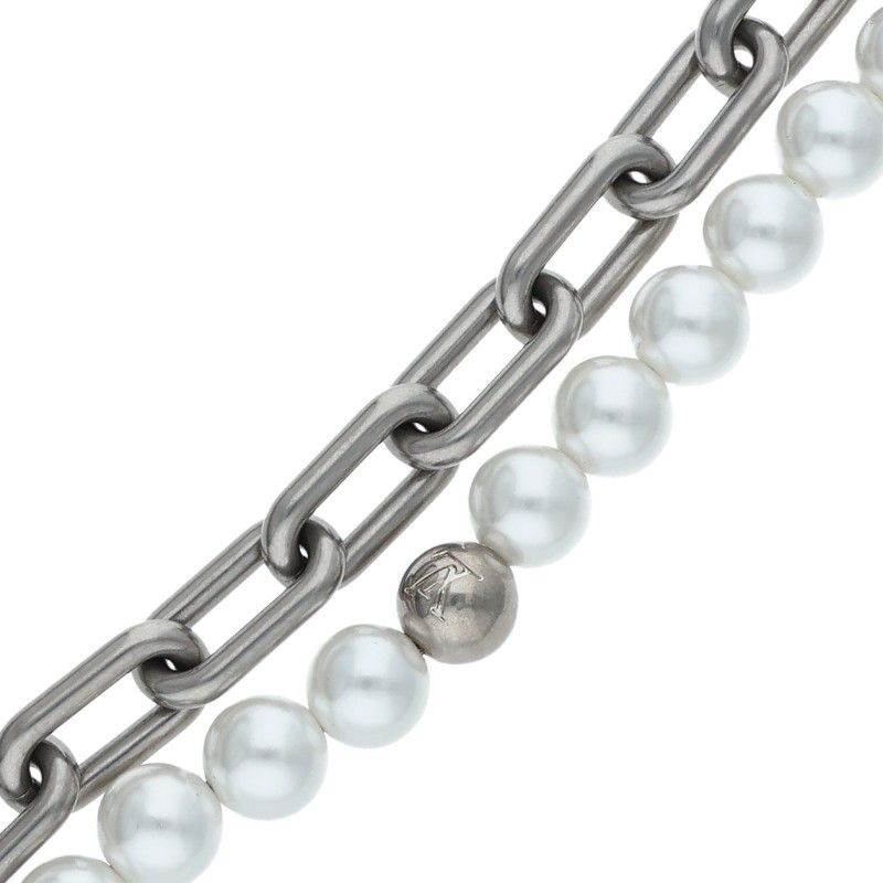ルイヴィトン M 02606 バッグチャーム チェーンベルト パール LVロゴパール シルバーウォレットチェーン メンズ
