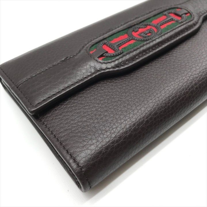 激 GUCCI グッチ インターロッキング シェリーライン レザー 三つ折り 長財布 ウォレット ブラウン レディース ブランド m 15083