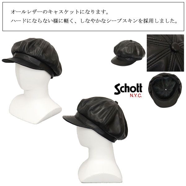 Schott ショット 2974001 3129113 LEATHER NEWSBOY CAP レザー ニュースボーイ キャップ キャスケット 09 10 BLACK M