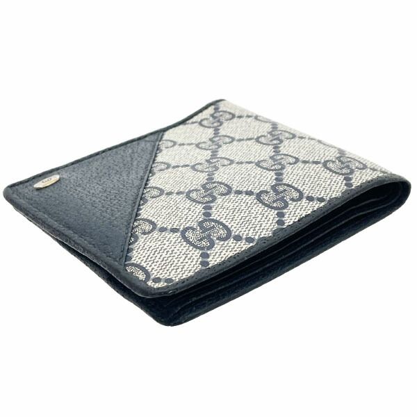 グッチ 財布 二つ折り財布 PVC レザー 革 ネイビー 紺 01 03 411 GUCCI ヴィンテージ GGプラス コンパクト財布 ミニ財布 ミニウォレット ウォレット サイフ メンズ 紳士 男性