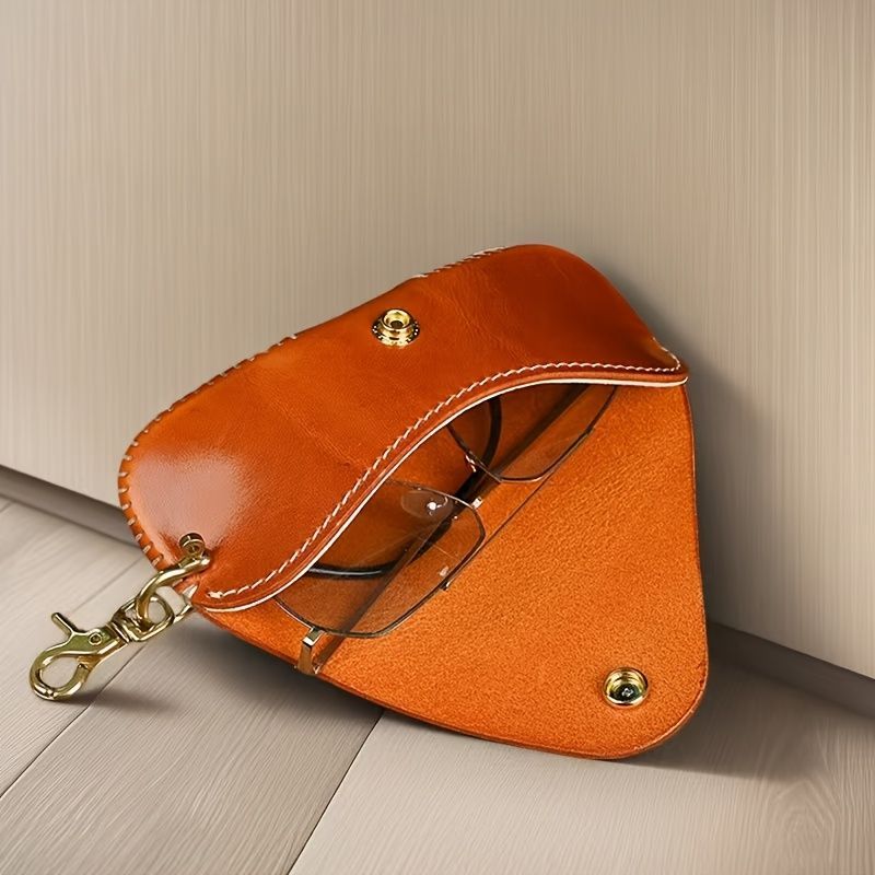 手縫い仕上げの温もりと、真鍮スナップクロージャーの重厚感が大人の魅力を引き立てます。サングラスだけでなく、キー・イヤホン・小銭も整理できる多ポケット設計。