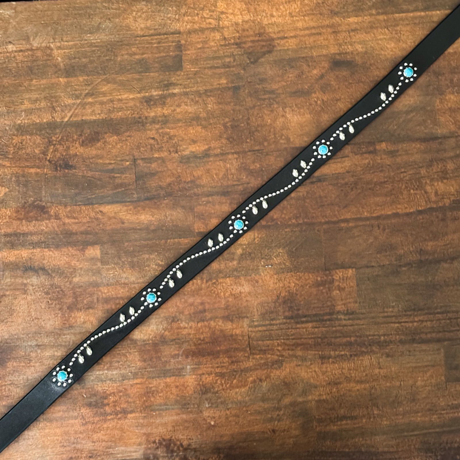 jinハンドメイドナローベルトブラックフラワーオールTK