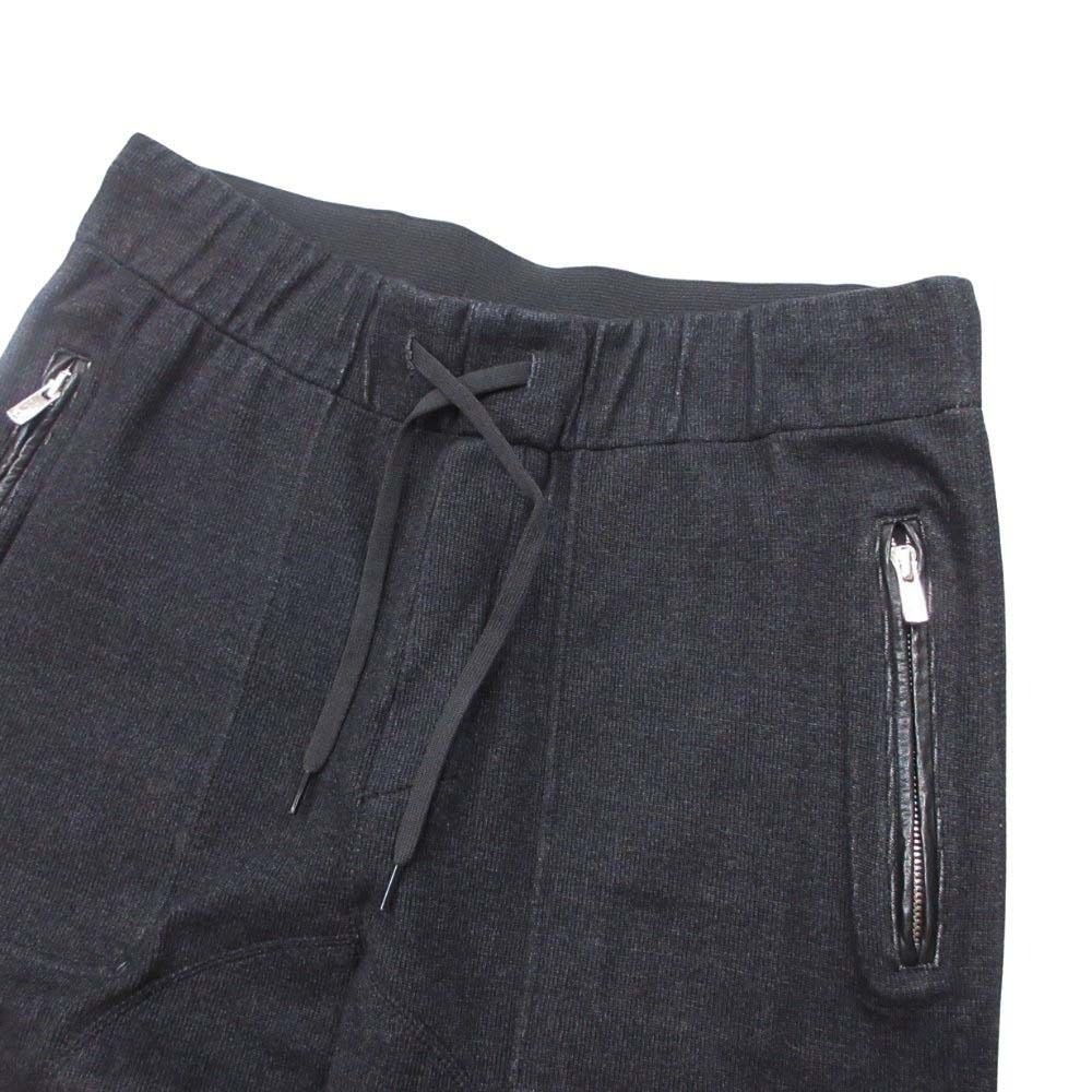 bajra バジュラ 牛革 本革 レザートリム スウェット トラウザー パンツ イージーウエスト 2 黒 ブラック メンズ 古着