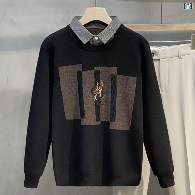 3 XL 6 秋冬 コーデ メンズ 服 シンプル ファッション オシャレ 大人 かっこいい 大きいサイズ ストリート 紳士服 フェイク ツーピース ビジネス カジュアル シャツ セーター スリム レイヤリング