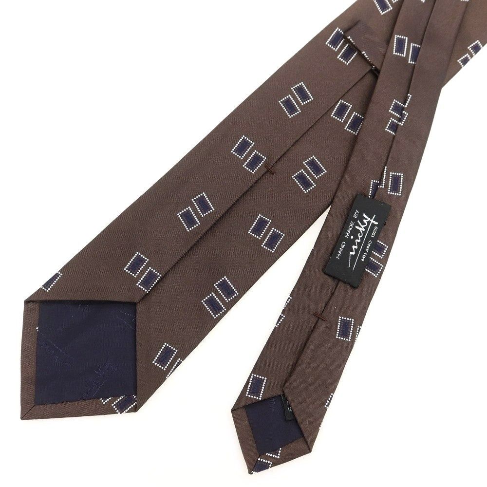 ニッキー nicky シルク 小紋柄ネクタイ ダークブラウンxネイビー メンズ