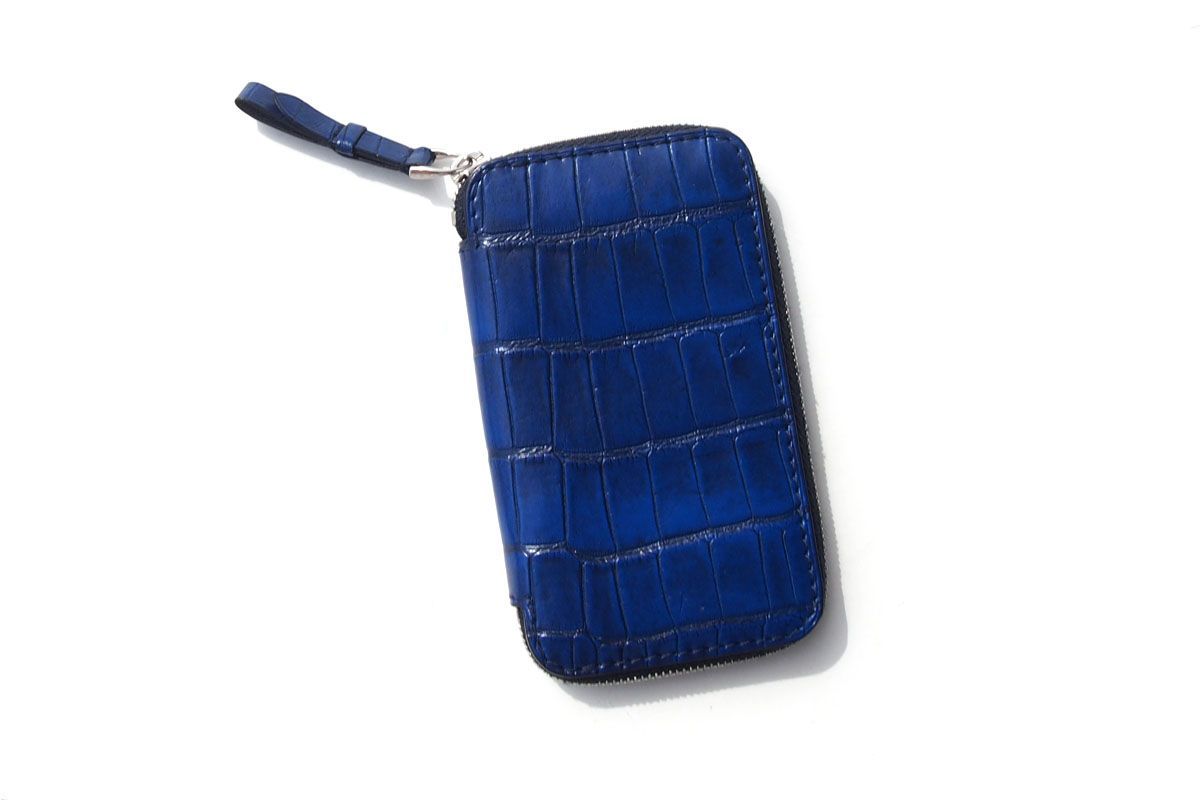 アリゲーターの耐久性、ゴートレザーの柔軟性、そして鮮やかな発色が魅力のコインケース。