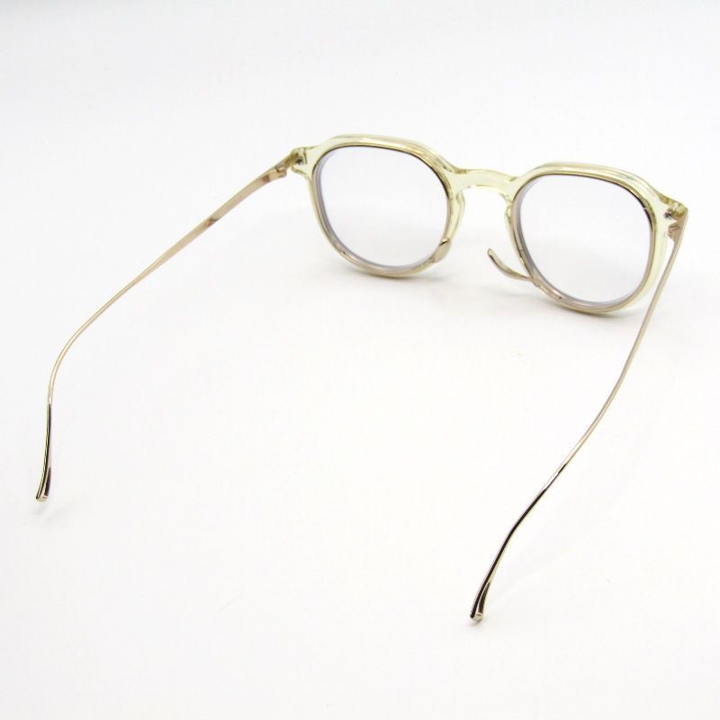 美品 Kame ManNen カメマンネン メガネフレーム KMN-141 度入り 日本製 クラウンパント インナーメタル CL クリア/ゴールド