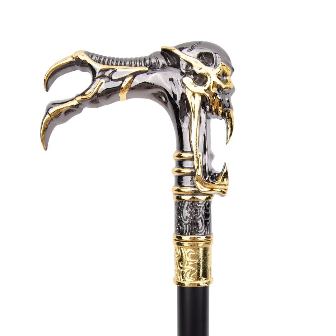 杖 ゴースト スカルヘッド ブラック ゴールド ステッキ スカルステッキ 髑髏 ドクロ 骸骨 Skull スケルトン スチームパンク つえ おしゃれ ゴシック パンク ファンタジー 中世 紳士 ジェントルマン コスチューム ヨーロッパ 男女兼用