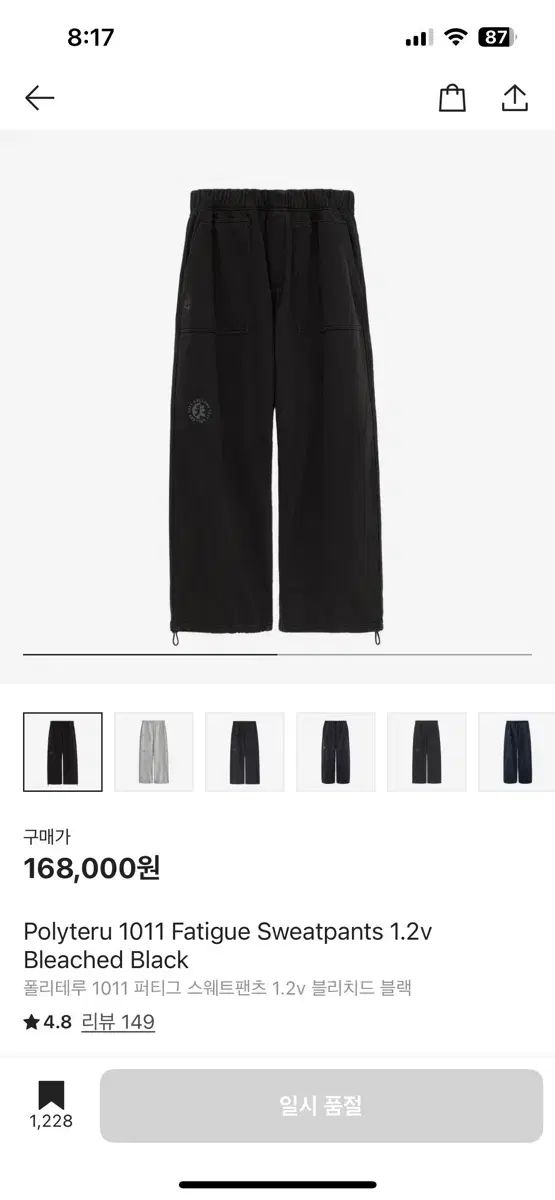 3 ポリテリル ファティーグ ブリーチド ブラック